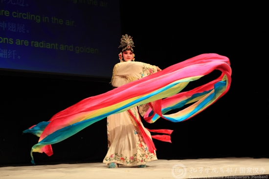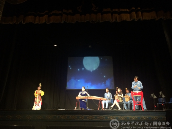 上海戏剧学院的师生为观众带来了京剧、昆曲名家名段《借扇》、《天女散花》和《拾玉镯》,演员们专业的素养、功底、扮相令当地观众叹为观止。在传统民族器乐的表演中,二胡、琵琶以及古筝的独奏以及民乐合奏展现了东方古典神韵,给在场观众带来了全新、奇特的感受,赢得了在场观众的阵阵掌声。