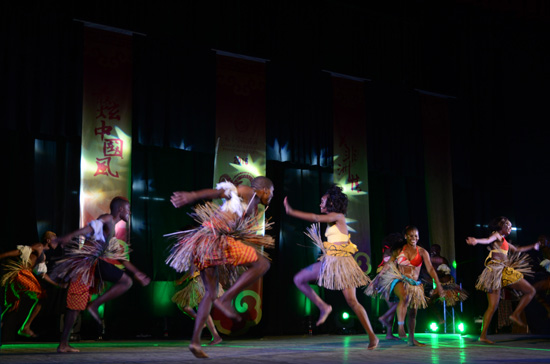 演出当中,还穿插了马普托当地舞蹈团的《非洲热舞》和孔子学院学生的《中国歌曲串烧》,全场演出与观众互动,现场气氛非常热烈。