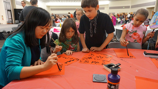 此次庆典是南犹他大学孔子学院成立后的首场中华文化推广活动,旨在宣传汉语和中华文化,让更多美国人了解中国。活动共分品尝中华美食、体验中华文化和文艺演出三部分。品尝中华美食环节中,参与者们有秩序地在餐桌旁排队取食,纷纷惊叹于中国食物的精致和美味。中华文化体验环节中,孔子学院设置了学习使用筷子和毛笔书法两个部分,每张桌前都挤满了人。