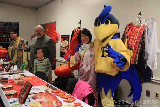 “万国节”是美国国务院和教育部于2000年发起的“国际教育周”活动的一部分,每年在全美高校举行,旨在促进跨文化交流,提升年轻人国际化视野。这是特拉华大学孔子学院第三次参加特拉华地区的“万国节”活动,得到特拉华大学各部门的重视。英语语言学院专门指派两名教师和几位学生全程协助展位宣传,特拉华大学的吉祥物“蓝雄鸡”也来到中国展位。孔子学院教师还接受了特拉华学生电视台专访。