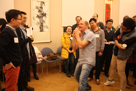 活动由“自我介绍”、“寻找共同点”、“默契考验”和“自由交流”几个环节组成。参与活动的学生根据提前安排好的名牌编号寻找同组的新朋友,并用主持人现场教授的汉语与芬兰语打招呼的方式进行自我介绍。然后,组员进一步了解彼此,寻找共同点。“我们都去过上海旅游”、“我们都喜欢吃辣的中餐”……第一次见面的“陌生人”很快在饮食、旅行、运动、生活习惯等方面找到共同的兴趣爱好。