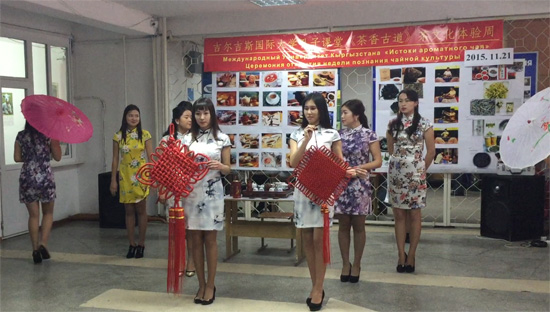 此次茶文化体验活动为期一周,包括茶文化图片展、茶具展示等。图片展分为茶具展示、茶艺表演、茶的分类、长嘴壶茶艺(功夫茶艺)和身边的茶艺等五个板块。在开幕式上,塔赞院长和古丽扎提院长分别致辞,她们表示,在孔子学院的推动和当地院校的积极配合下,越来越多的吉尔吉斯民众了解了中国文化,学生们也对中国越来越感兴趣。在新丝绸之路经济带的大前提下,中吉高校的合作越来越频繁,吉方院校很感谢孔子学院提供的一系列留学机会,也期待与孔子学院及国内高校更深层的合作。