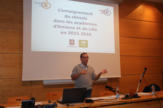 当地时间11月30日-12月1日,法国阿尔多瓦孔子学院举行2015年度法国北部学区汉语教师培训,法国教育部汉语总督学白乐桑 (Joël Bellassen) 、北部四学区督学夏理威(Olivier Salvan)主持培训,50余名来自法国北部地区的汉语教师和阿尔多瓦大学对外汉语教学专业硕士生参加此次培训。