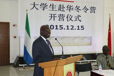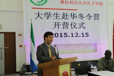 12月15日,驻塞拉利昂使馆举行塞拉利昂大学孔子学院大学生赴华冬令营开营仪式,驻塞拉利昂大使赵彦博出席仪式并致辞。塞拉利昂大学校长汤普森教授,福拉湾学院院长巴曼加教授,孔子学院塞方院长奥什教授、中方院长何明清教授及孔院全体教师、志愿者和冬令营学员40多人出席开营仪式。