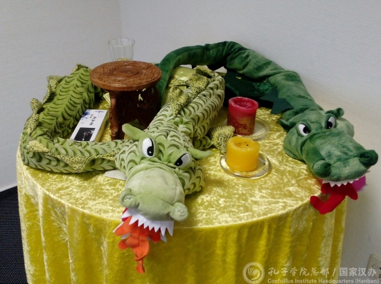 中场休息时,小客人们表现出对汉语和汉字的浓厚兴趣。他们围着故事会的道具和孔子学院陈列的书法字画问个不停。孩子们说中国童话很酷,希望有机会到中国去。