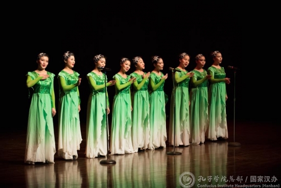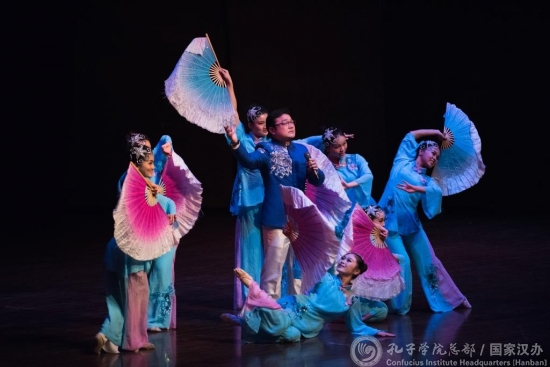 当地时间11月14日,湖北省黄冈市赴美巡演艺术团在肯塔基大学Singletary艺术中心进行文艺演出,吸引了该校师生及当地民众近500人前来观看。