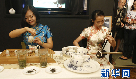 茶艺表演伴着二胡演奏。新华社发(佩特雷斯库摄)