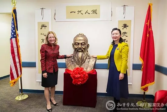 秦和院长向新泽西城市大学孔子学院赠送孔子半身铜像