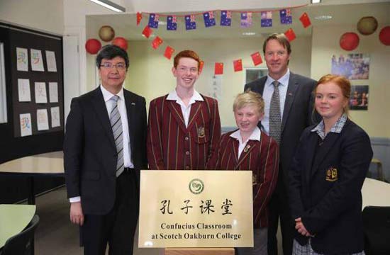斯科奇-欧克伯恩学校校长安迪·穆勒说:“我们很荣幸能跻身全球众多开办了孔子课堂的学校之列。自从去年习近平主席和彭丽媛夫人访问以来,中澳两国关系的不断加深令我校受益匪浅,我们的学生受邀游历中国,我谨代表学校请宋昱旻总领事向中国政府转达我们对中国政府的盛情邀请和中国人民的热情款待的感激之情。孔子课堂的开办对我们的学生学习中文和中国文化至关重要,无疑这将令澳大利亚的青年受益匪浅,未来更将拉近两国人民的关系。”