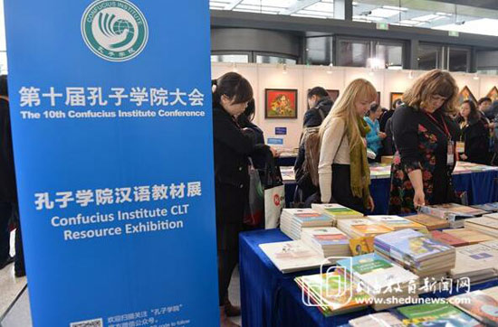 12月6日,由孔子学院总部/国家汉办、上海市人民政府联合主办的第十届孔子学院大会在上海开幕。期间,为了展示和推广国际汉语教材建设新成果,搭建展览展示、信息交流、业界沟通的平台,孔子学院总部在上海举办了汉语教材展,展示近年来新开发的汉语教材、文化读物、网络平台、孔子学院优秀本土教材以及30余家相关机构开发的各类汉语言文化教学产品。