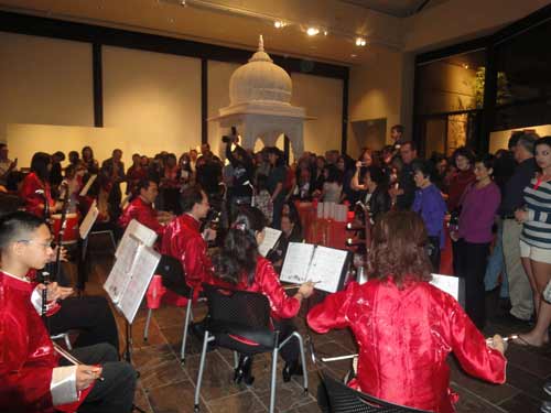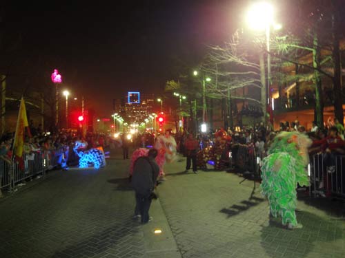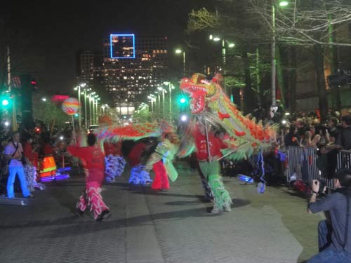 本次主办者是长期与达拉斯德州大学孔子学院合作的克罗亚洲艺术中心,我们共同举办过“中国玉石文化论坛”和其它中国文化推广活动。庆祝活动分三大项:中国艺术表演,如竖琴演奏,中国管弦乐演奏,中国功夫秀和舞龙舞狮等;艺术演示,如书法、剪纸,茶道;家庭娱乐活动,如制作红信封,制作照明灯,魔法花脸,卡拉OK等。丰富浓郁的中国兔年庆祝会吸引了达拉斯的各族人民,他们既对东方文化感到几分新奇,又尽情地享受到了独特的中国文化魅力。在那悠扬的弦乐声中,观众们翩翩起舞;中国功夫秀引来阵阵喝彩和经久不息的掌声;吉祥的舞龙、喜庆的舞狮不但乐得白脸蛋、黑面孔的孩子们叽叽喳喳到处乱窜,金发碧眼、黑脸上镶嵌白牙白眼珠的成年人也争相往狮子口里投红包,图个吉利。