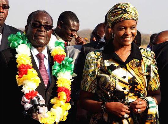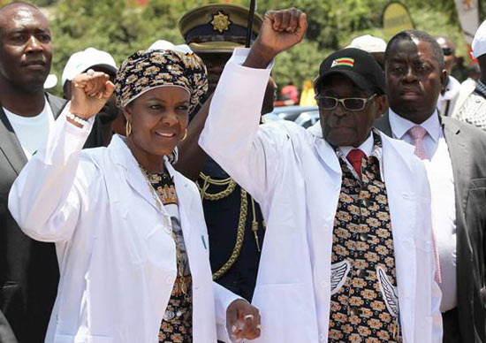 2014年12月6日,总统穆加贝和第一夫人格蕾丝在首都哈拉雷出席执政党民盟会议。(新华社/路透)