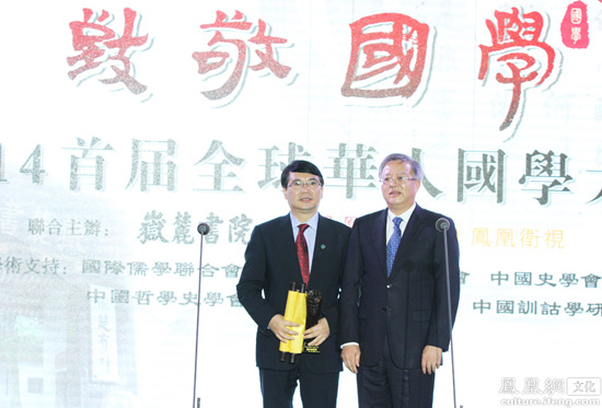 凤凰网文化讯 由凤凰网、凤凰卫视联合岳麓书院主办的“致敬国学—2014首届全球华人国学大典”,于2014年9月29日晚在长沙千年学府岳麓书院举行颁奖盛典,现场揭晓首届“全球华人国学奖”,包括“国学终身成就奖”、“国学成果奖”和“国学传播奖”等。孔子学院获首届国学大典“年度海外影响力大奖”。