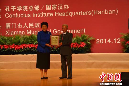据印尼阿拉扎大学孔子学院9日披露,在厦门7日举行的第九届全球孔子学院大会上,阿拉扎大学孔子学院凭借其突出的工作表现被评为“先进孔子学院”。中国国务院副总理刘延东女士为阿拉扎大学理事长、阿拉扎大学校长Prof.Dr.Ir.Sardy Sar,M.Eng.Sc先生颁奖。