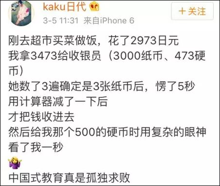 这位微博网友表示,不仅仅是日本,在英国和美国也遇到了同样的尴尬:他们的收银员都会把整钱强行破开找零。