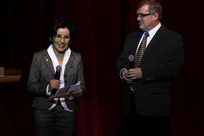 普渡大学校长France A. Córdova博士夫妇也参加了这次新春联欢会并致词:“2011年的中国新年是兔年。兔年在我们的新学年里,也将是一种充满希望和积极意义的象征”。她衷心希望所有普渡大学和社区的华人“新年快乐,万事如意”。普渡中国留学生——华人学者联谊会热情地将火红的, 象征着祥和快乐的中国结赠送给了校长夫妇。