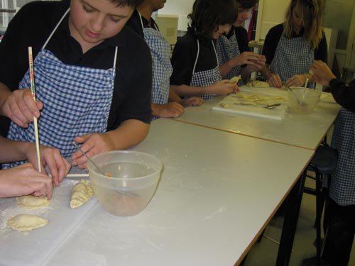春节期间,学校的食堂也特意张灯结彩地装扮起来,给学生们准备了中国饭。学校的Food Technology 课还安排孔子课堂的老师给学生上了两堂特殊的烹饪课:学做中国饺子。英国孩子吃过中餐的不少,可是吃过饺子的不多,所以兴趣很浓。一节100分钟的烹饪课,孩子们在老师的帮助下都能吃上自己包,自己煮的饺子,个个香得咂嘴称赞。有的孩子除了自己吃,还把剩下的带回家去给父母尝。老师们大年三十儿的饺子,就是在课堂上和孩子们一起包,一起吃的。