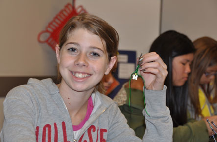 学生展示她做的中国结