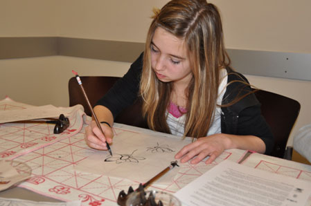 2011年2月24日星期四早上9点45分,来自加维兰峰学校孔子课堂 和小石溪高中孔子课堂的美国学生专程来到亚利桑那州立大学参加由亚利桑那州立大学孔子学院主办的“体验中国文化”活动。 此次活动主要分为两个环节,分别为体验中国绘画和打中国结, 让学生在参与的过程中了解中国绘画基本知识,感 受中国书法的魅力,同时享受手工制作历史悠久的中国结。