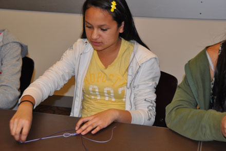 学生们练习打中国结