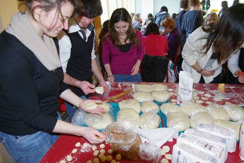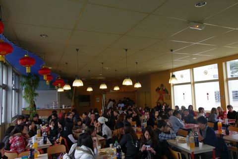 值得称道的是,20余人的包饺子志愿者用最短的时间,将总数2000多个热腾腾饺子陆续端上了桌,让大家一饱口福,过上了一个真正意义上的中国新年。 晚上19时之后,联欢会进入尾声,在激动人心的抽奖之后,中法师生们唱起了卡拉ok,三位可爱的法国女孩登上舞台,唱起了大家熟悉的“香榭丽舍” ,专门献给在座的中国朋友们。21时左右,联欢结束,大家都意犹未尽,众人互祝新春快乐。