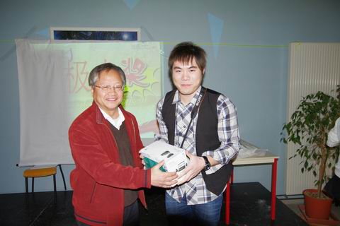 孔子学院韩祝祥院长为抽奖头等奖颁发礼品
