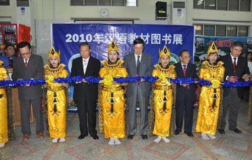 新华网 缅甸曼德勒2月8日电 缅甸曼德勒福庆学校孔子课堂8日在福庆大礼堂隆重举行2010年汉语教材图书巡回展开幕式。中国驻缅甸曼德勒总领事唐英、曼德勒各侨团华校和缅甸各地侨团华校代表、汉语教师及社会各界人士200多人出席了开幕式。