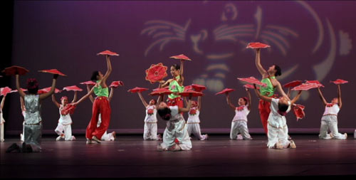 红红火火过大年,在舞蹈《好日子》《过年啦》中,穿红戴绿的孩子们,把现场观众的热情全部点燃。舞蹈艺术总监胡秋子独舞《蒙古人》节奏明快,舞步轻捷,在一挥手,一扬鞭,一跳跃之间洋溢着蒙古人的淳朴,热情,勇敢,粗旷和彪悍,表现了蒙古少女开朗豁达的性格和豪放英武的气质。《碧波孔雀》中来了一群傣族姑娘,她们用孔雀优雅体态来送出新年的祝福。他们时而蜻蜓点水,在湖边嬉戏,时而昂首高歌,在林间雀跃。