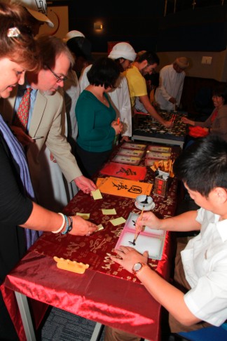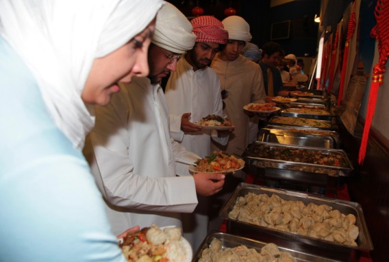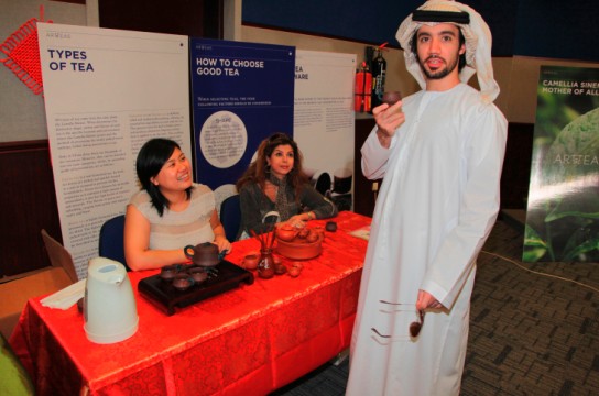 “民以食为天”,表演结束后,享誉阿布扎比的四家中餐厅:中华餐厅,城宫食府,红房子和北京楼为大家准备了热气腾腾的饺子和品种多样的中国菜,师生们争先恐后品尝中华美食,赞不绝口。主办方还在现场准备了中国艺术品展示、茶艺展示、书法展示和筷子体验等活动,大受师生们的欢迎。