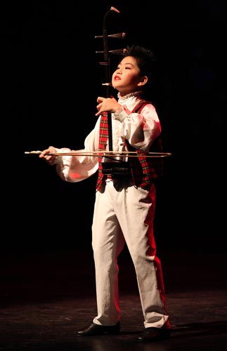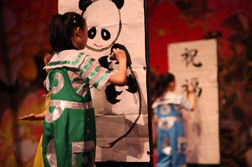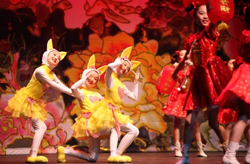 下午两点,演出正式开始。从热闹的群舞到民歌表演唱再到民乐独奏,小演员们精彩纷呈的表演博得了台下阵阵掌声。开场舞蹈《兔年吉祥》一下子把观众带入了欢快热闹的庆祝中国新年的 气氛中。二胡独奏《赛马》是最受欢迎的节目,小演员出神入化的演奏让台下的小观众们听得如痴如醉,一曲奏毕台下传来雷鸣般的掌声。压轴舞蹈《小小书画家》把整场演出推向了最高潮,4位小演员在短短几分钟的伴舞中就完成了两幅栩栩如生、惟妙惟肖的中国画及两幅中国书法作品。当《我们都是小红花》的尾声音乐响起时,观众们伴着音乐的节拍和台上的演员一起鼓掌,久久不肯离去,似乎一个半小时的演出时间太短,刚刚开始就要结束了。