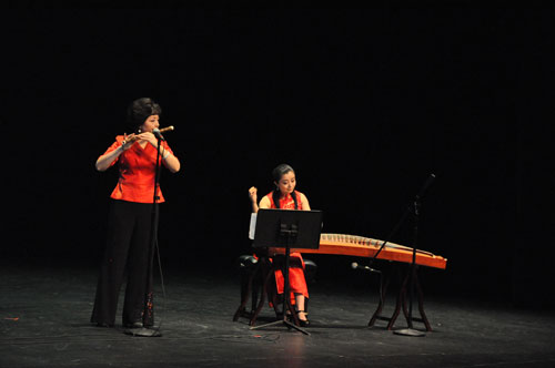 开场舞《荷塘月色》将大家带入中国传统的庭院的美好意境之中,由阿尔弗莱德大学孔子学院古筝老师吴中蓓带来的古筝独奏《汨罗江上》、以及吴老师与来自宾汉姆顿大学戏曲学院的程世君老师的古筝笛子合奏《皂罗袍》,将龙舟竞赛思屈原的爱国场景、牡丹花下独自怜的含蓄之美呈现给美国友人。