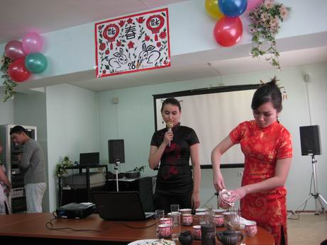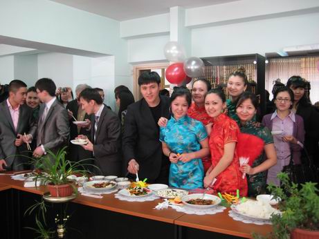 经过半个多月的精心筹备, 2011年3月1日,哈萨克斯坦国立大学孔子学院与东方系共同举办的“中国美食文化节”在哈萨克国立大学汉语教研活动室正式拉开帷幕。孔子学院和东方系师生共100余人参加了本次活动。哈萨克斯坦民族大学东方系系主任努尔加玛丽和孔子学院中方院长张建芳分别为活动致辞。