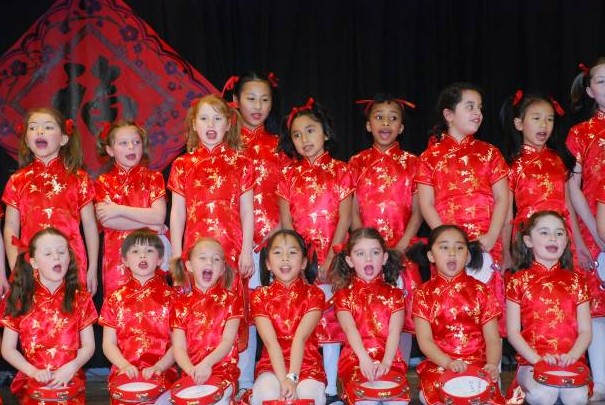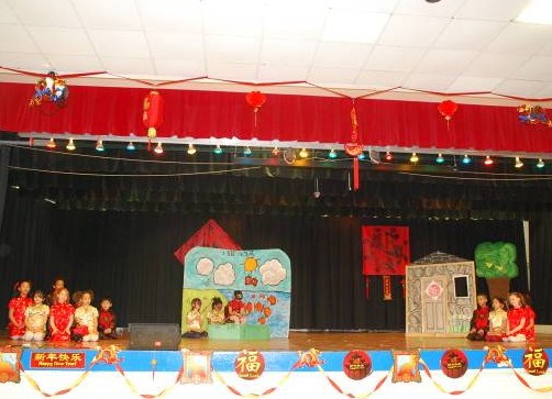 庆祝活动在经典的寓言小故事《小猫钓鱼》中拉开了帷幕,猫妈妈的耐心、猫姐弟的三心二意都被美国小朋友演绎得生动逼真,孩子们对角色的把握、理解以及投入的表演让台下观众有眼前一亮的感觉。紧接着的《唐诗朗诵》由12首唐诗组成,2年级小朋友们字正腔圆的声音配合着抑扬顿挫的节奏,瀑布、月亮、低头沉思的诗人一幅幅画面仿佛就在眼前。如果不是在现场,你还真听不出这些古诗是由一群7岁大的白皮肤、黑皮肤、黄皮肤的孩子们朗诵的。虽然孩子们表情各异,肤色不同,但有一个共同的特点——那就是对中国文化的深深热爱。伴随着欢快的音乐,嘴边长痣、手拿烟袋、搔首弄姿的媒婆,八字胡、三花脸、踱方步的芝麻官,小胡子、大皮鞋、圆礼帽、鸭子步、拐杖不离手的卓别林纷纷来到了观众眼前,他们夸张的表情、幽默的动作把中西文化中不同丑角的神韵活灵活现地展现了出来,舞蹈《群星贺春》压轴登场,孩子们惟妙惟肖、妙趣横生的精彩表演,引来了台下观众的阵阵笑声,不时传来了阵阵掌声。这一刻,中国传统文化和西方现代文明巧妙融合,中西文化显得那么的和谐统一。整个庆祝节目包括了儿歌童谣、唐诗朗诵、中文歌曲、小品、舞蹈等。精彩的节目让学生家长们频频点头,会心地微笑,眼神中透露出对SAIL中文老师们辛勤劳动的认可,看得出他们也深深着迷于中国文化。