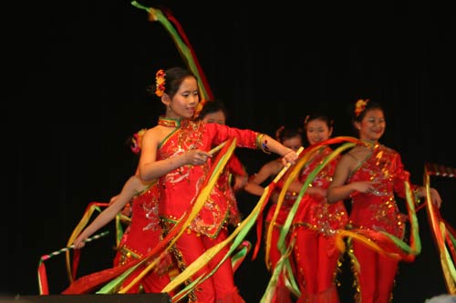 花木兰舞蹈团表演了中国传统的多民族舞蹈,引人入胜的各民族色彩斑斓的服装、京剧脸谱、独特的彩丝带编舞设计,都带给观众美伦美幻的视觉享受。