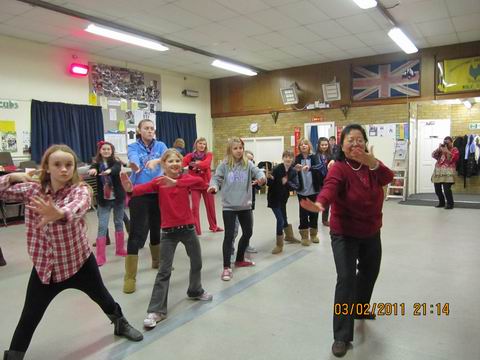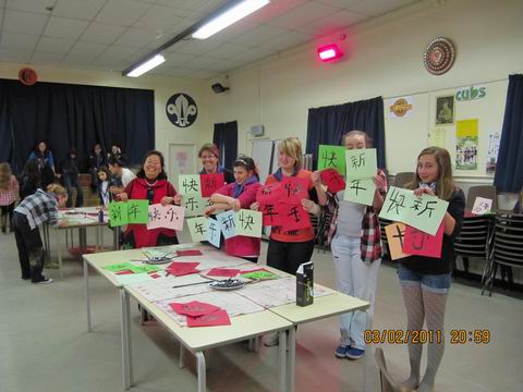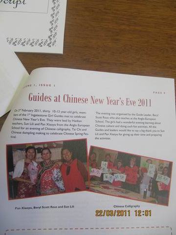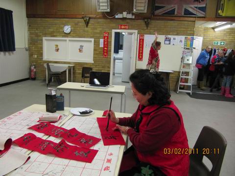 2011年2月3日晚,三十多位ingatestone,Essex郡的首届英国女童子军(1910年成立的英国女青年及少年的组织)成员欢聚一堂,共同庆祝中国农历新年。应邀参加此次活动的孔子课堂汉语教师与她们同乐:一同包饺子,一同练书法,一同译春联,一同唱“新年好”,一同体会“太极”的境界。姑娘们喜盈盈,乐陶陶,不停地飞来舞去,想遍尝所有活动的乐趣。她们为能有这么一个美好的夜晚学习中华文化而感到兴奋,为能参加这么多有趣的活动而感到欣喜。