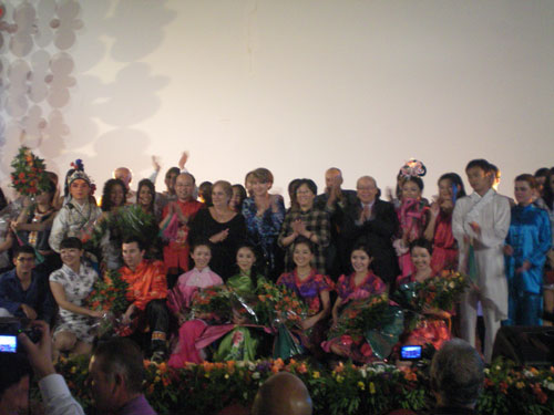 晚会在一曲清新素雅的《茉莉花》中结束。刘玉琴大使、克里斯蒂娜副校长等上台同演员们一一握手,祝贺他们演出成功,并同全体演员合影。