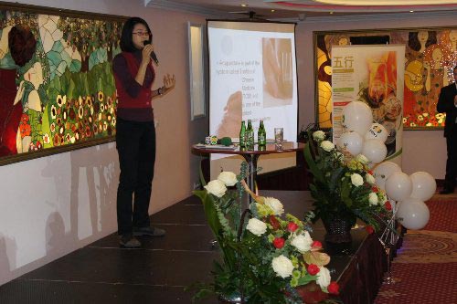 孔子学院中方院长杨建华首先展示了四幅表现“山川悠远”的传统中国山水国画,并对比了中西绘画理念的差异,介绍了中国文化对于意境的追求与理解,和“知者乐水,仁者乐山;知者动,仁者静;知者乐,仁者寿”的动静结合的理念,以此作为此次中国文化讲座的开场白。接着,密茨凯维奇大学孔子学院派驻华沙维斯瓦河大学汉语教学点的志愿者教师瞿雯文以中华保健养生理念为主题,向波兰朋友全面介绍了中国传统文化关于保健养生的理念与知识。瞿雯文老师为此做了充分的准备,材料丰富多彩,使波兰朋友较为深入地了解了中国的保健养生之道之精深。