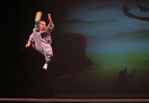 随后,表演进入了少林拳脚的展示:劲爆的音乐配合着柳云南大师虎拳的威猛、袁跃辉大师五象拳的灵动,无边的热情在舞台上下蔓延;而后由功夫大师穆中旭带来的醉拳,更是让全场的观众——尤其是土生土长的美国观众叹为观止,主持人刘星从旁解释说,“之所以选择醉拳,重在体现中国功夫中的一条原则’出其不意而攻其不备’!”