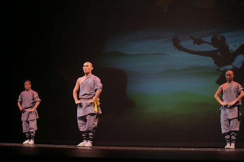 接下来,音乐骤然一顿,观众们都回身观望是否音乐出现了故障的时候,舞台上的大师们坐了下来,展示了少林僧人平日的必备功课——坐禅。音乐再度响起,观众们会心一笑,观众席上不是闪烁着的闪光灯证明了观众的心已被舞台上的精湛表演牢牢牵住。而后大师穆中旭表演了少林绝技——飞针穿玻璃,在众人的惊叹声中,三位大师又轮番上演了追风赶月刀、少林铄和牧羊鞭。
