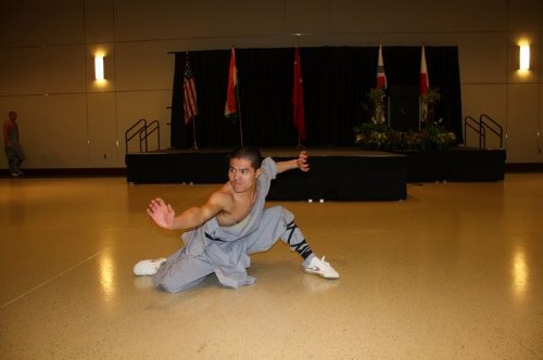 表演结束后,文思洛普大学武术协会的会员们围坐在少林师傅们的旁边要求指点一二,师傅们也饶有兴致地一一作答,一旁担任翻译的孔子学院教师刘星忙的不亦乐乎。时间一点点过去,大家都没有离开的意思。文思洛普大学武术协会的会长坎贝尔先生诚邀功夫中心共进晚餐。席间,功夫师傅们可谓一餐三吐哺,被功夫会员们的功夫练习和实战中的各种问题所包围,几经解围,大家都还是热情不减。坎贝尔先生跟功夫中心领队刘星老师一再要求:要多请师傅们来自己的协会,进行现场指导。刘星老师也欣然代表孔子学院接受了这一邀请。