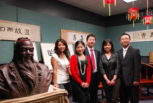 赵教授和孔子学院部分教师在孔子像前合影