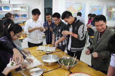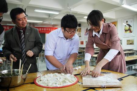 在老师的指导下,学生们还亲自体验了剪窗花,贴春联等中华才艺,兴趣盎然。不一会,泰中两国师生30余人便开始包饺子,和面、调馅、擀皮、包饺子,这些泰国学生将一个个亲手包好的饺子放进锅里,还不时地翻弄着。热腾腾的饺子出锅了,吃到自己亲手包的饺子,大家的心情非常兴奋。