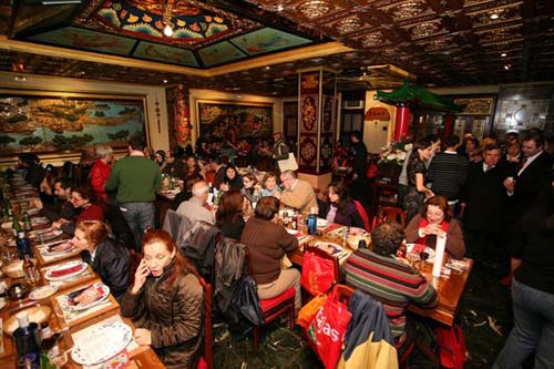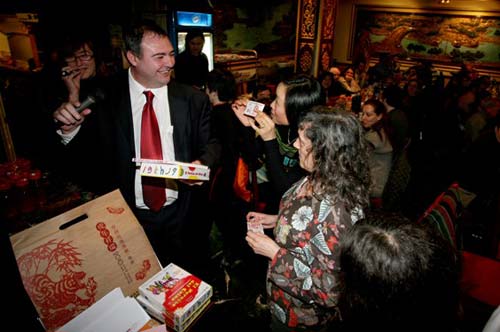 压轴戏是新春晚宴。饺子、包子加蛋炒饭。宫保鸡丁、红烧鱼片、豆腐皮蛋、大虾云卷……连中国百姓的家常菜酸辣土豆丝,都成了最抢手的美味佳肴。将近200名与会者使美珍饭店这个不大的中国餐馆人声鼎沸、杯觥交错、喜气洋洋。在场的西方客人切身感受了中国节日文化的祥和团聚气氛。孔子学院总部理事、瓦伦西亚大学校长 Francisco Tomas Vert 先生百忙之中也应邀参加了晚宴。由安文龙院长亲自主持的抽奖节目高潮迭起,有的汉语学习者当场便领到了汉语学习的字典和在孔子学院免费学习汉语的入门证,人们时时报以热烈的掌声。晚宴一直持续到凌晨。