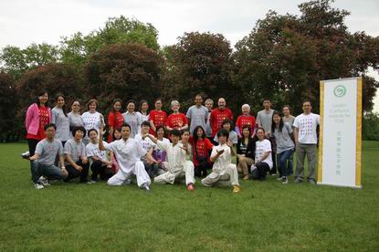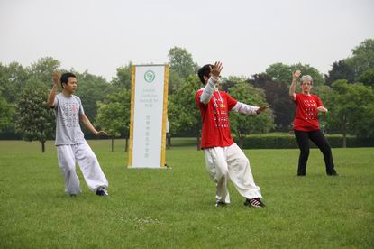 上午10点,伦敦中医孔院的专业太极老师以一套完整的24式太极拳拉开了此次活动的帷幕。通过动静有序、张弛自然的动作变化,广大爱好者了解了太极拳的精髓所在——行云流水的动作,刚柔并济的和谐,气息调整的技巧,以及内在意念的修为。同时,太极拳也展示了其在保健调理身体机能方面的魅力。此次太极月活动不仅要让外国朋友学会太极拳,还要推广融入自然、保健防病的功效。为了配合此次活动,伦敦中医孔院网站增设了太极栏目,为太极爱好者提供全方位信息资源。