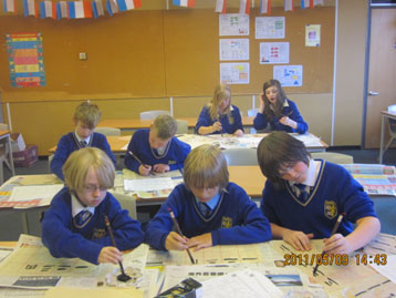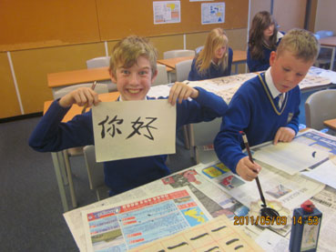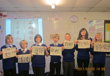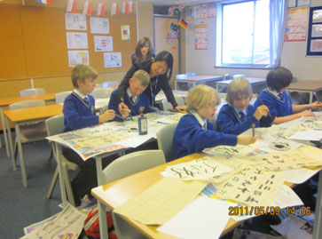 2011年5月9日,英国维克菲尔德Woodkirk中学的学生们兴致勃勃地体验了用毛笔书写汉字的乐趣. 首先, 英国专长学校联合会孔子学院的汉语教师段明老师用精心设计的PPT和简短的视频向学生们介绍汉字的发展历程,文房四宝的种类并展示历代名家的书法作品.学生们对这些美轮美奂的中国书法作品大为称赞.一个个跃跃欲试. 在教师讲解及示范执笔,蘸墨及运笔后, 每个人都迫不及待地在宣纸上执笔书写汉字.短短一节课的时间里,从最简单的数字“一”到“你好”,他们已经写得有模有样. 这次的书法体验不仅让学生们加深了对中国文化的了解而且进一步激发了他们学习汉语的热情,课后,学生们纷纷希望继续练习中国书法和了解更多中国文化的强烈愿望.