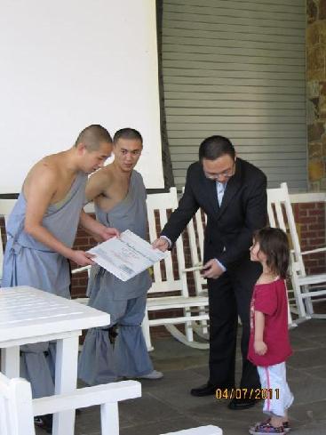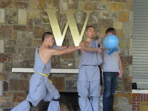 费佛尔大学孔子学院功夫中心,此次带来的表演是少林硬气功——《飞针穿玻璃》和少林传统养生气功——《八段锦》的表演。