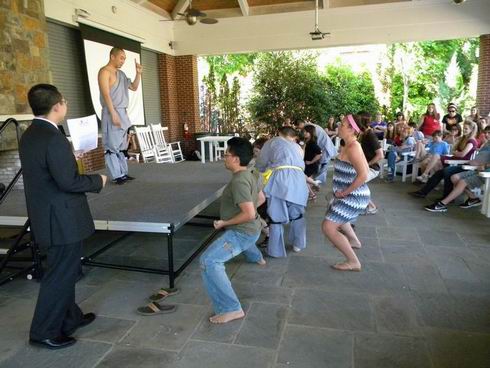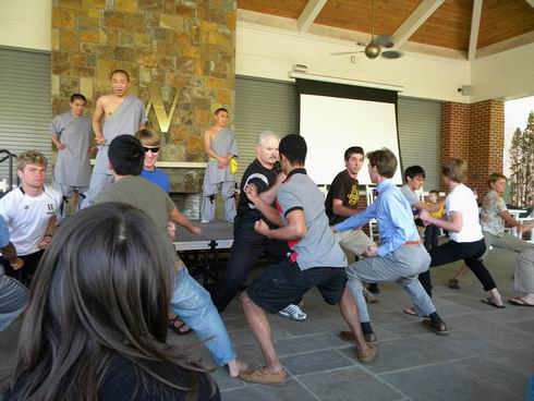 4月7日下午3点,费佛尔大学孔子学院功夫中心一行来到了南卡罗来纳州Wofford大学,这所大学共有学生一千五百人,其中有40多人在中文系学习,参与学习中文的人数超过200人,听说中华功夫要来的消息,很多学生都担任了志愿者和消息发布员,临近的社区以及旁边的一所女生寄宿制大学的二十多名学生,共计百余人都来到了功夫表演现场,准备观看表演。