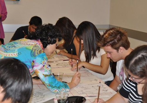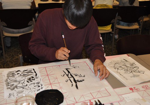 2011年5月9日星期一早上9点45分,来自Westwood高中的近八十名美国学生专程来到亚利桑那州立大学参加由亚利桑那州立大学孔子学院和国际语言文化学院联合主办的“体验中国文化”活动。 此次活动主要分为两个环节,分别为体验中国国画和做中国手工, 让学生在参与的过程中了解中国绘画基本知识,感受中国书法的魅力,同时享受手工制作。