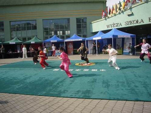 来自天津理工大学的武术教练何溪静带领由其训练的波兰国家武术队也赶到维斯瓦大学文化活动校园,将武术专用地毯从该校体育馆铺设到孔子学院的中国文化展台前。精彩的中国武术表演吸引了校园中的师生,师生聚集到武术演出现场,为武术表演不断喝彩叫好,气氛感人。