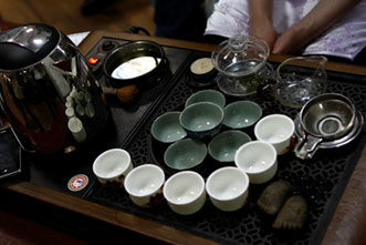 等客人倒茶呢
